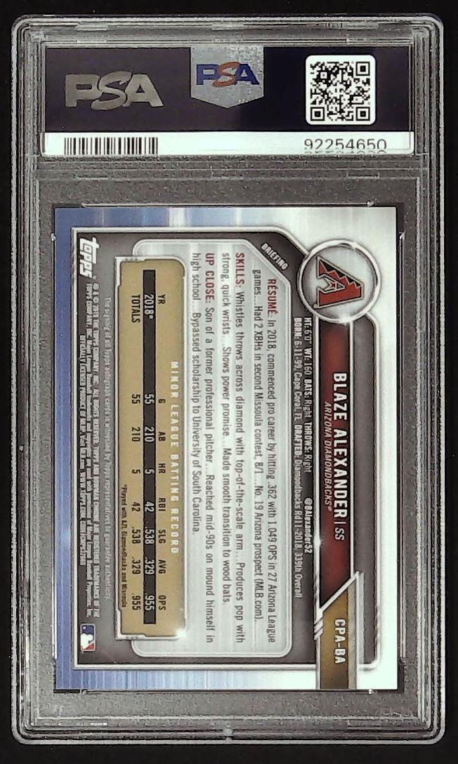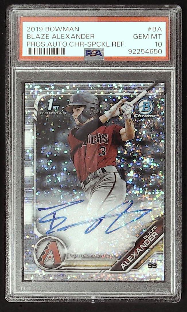 2019 bowman blaze alexander spckl,ref,auto psa 10